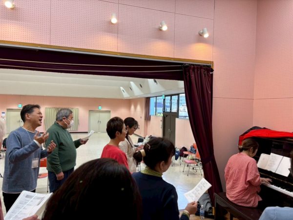 来週のプライベートライブに向けたゲネ。今日のレッスン場には舞台があるので、今回はそちらに立って歌ってみることに。